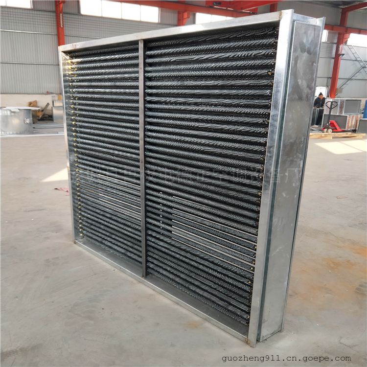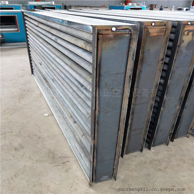 带用机械绕片方法,绕在无缝钢管上,铜制绕片散热排管UII型 钢制绕片散热片SRZ型 蒸汽空气加热器然后进行表面镀锌处理。散热翅片与散热管接触面广而紧,传热性能良好,稳定并且耐腐蚀。蒸汽或高温水流经钢管之内,热量通过紧绕在钢管上的翅片传给片面的空气,达到加热空气的作用。
